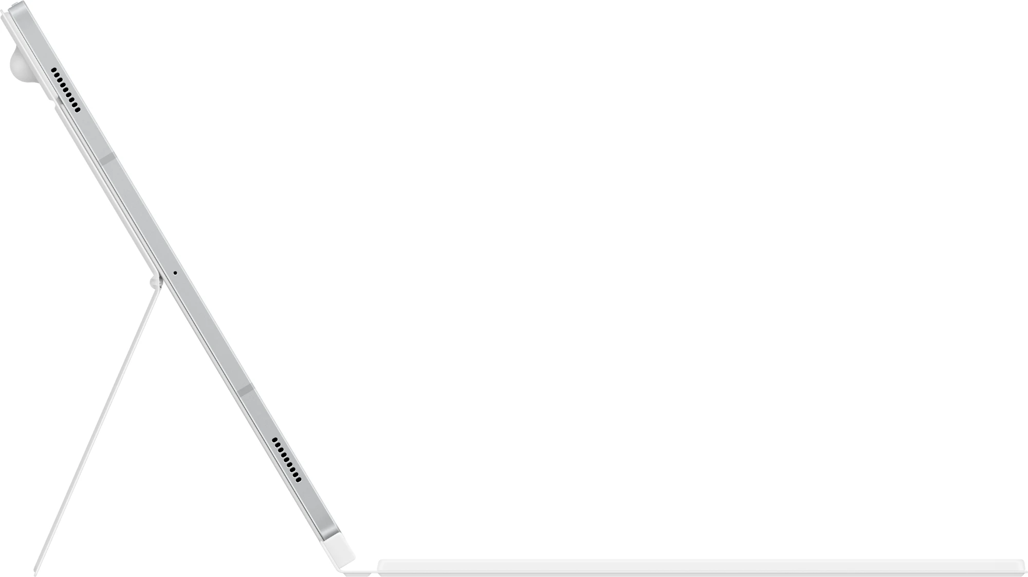 Klappe das Cover bis zu 150° zurück, um das Book Cover Keyboard bequem zu nutzen. Passe den Winkel auf der Rückseite einfach an, um deine Position zu finden, für eine entspannte Ansicht, egal ob du zu Hause auf der Couch oder in einem Café arbeitest.