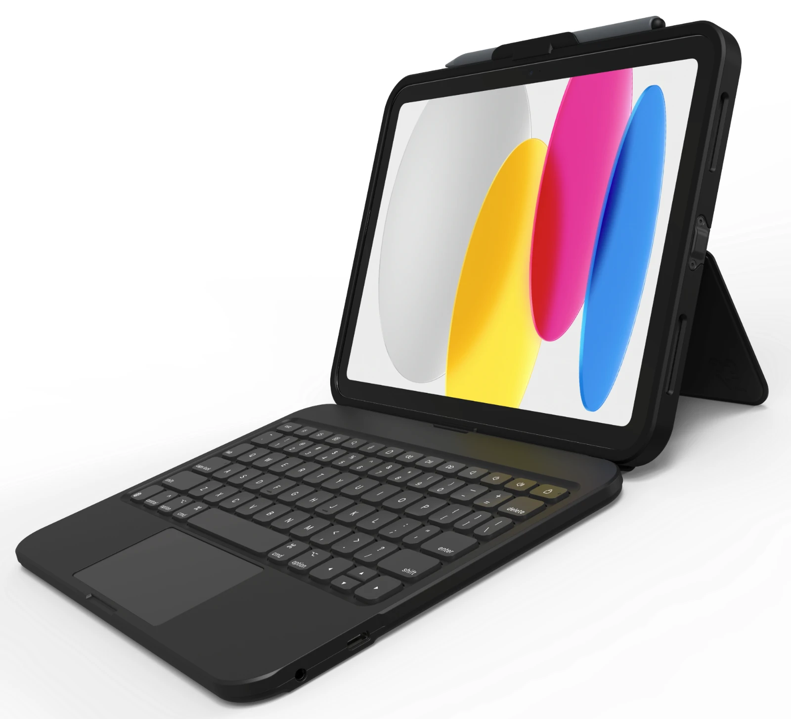 Tough Keys ist die langlebige, zuverlässige Tastatur und Tasche für Ihr iPad. Mit USB-C Direct Connect brauchen Sie weder Bluetooth zum Verbinden noch Batterien zum Aufladen. Tough Keys hat ineinander greifende Tasten, die nicht abspringen können. Es verfügt über ein Asset-Tag-Fenster, einen Stylus-Halter, einen Audioanschluss und ist wasserdicht. Das Gehäuse bietet einen Fallschutz von 6,6 Fuß. Dies ist die Lösung für alles und überall für Ihr iPad.