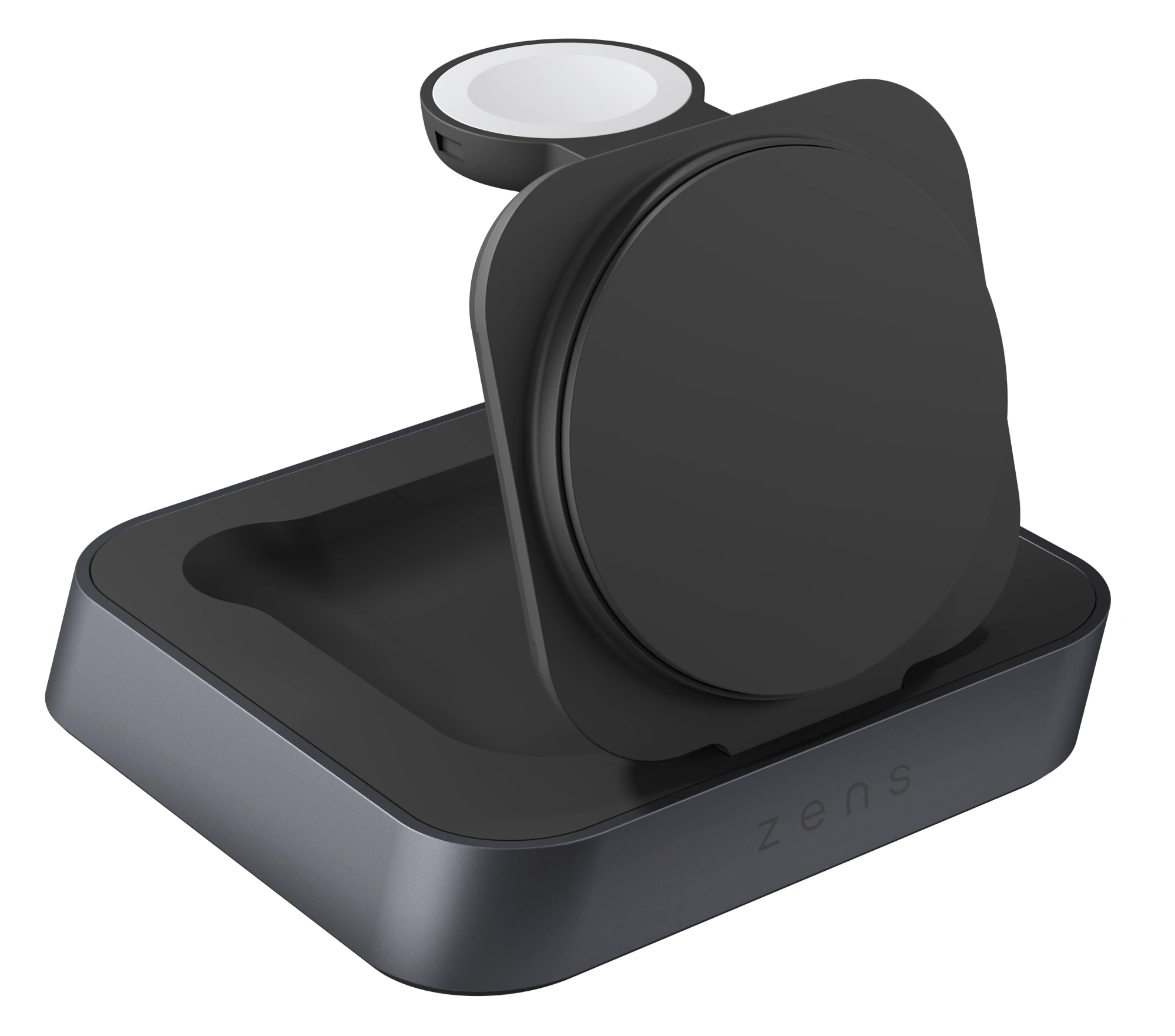 Der Nightstand Charger Pro 2 ist eine zuverlässige und bequeme Möglichkeit, Ihr Qi2- oder MagSafe-kompatibles Gerät sowohl im Hoch- als auch im Querformat drahtlos aufzuladen. Auf der Rückseite dieses Ladegeräts können Sie Ihre Apple Watch auch mit maximal 5 W aufladen.Schluss mit verhedderten oder kaputten Ladekabeln, die oft ausgetauscht werden müssen. Ihre Geräte verfügen über einen eigenen Ladeplatz, sodass Sie beruhigt sein können. Legen Sie einfach Ihr Telefon, Ihre AirPods oder Ihre Apple Watch auf das Ladegerät und der Ladevorgang startet automatisch. Das Ladegerät besteht aus hochwertigem Zink/Legierung und ist auf Langlebigkeit ausgelegt. Der Nightstand Charger Pro 2 bietet eine Ladeleistung von bis zu 15 W.